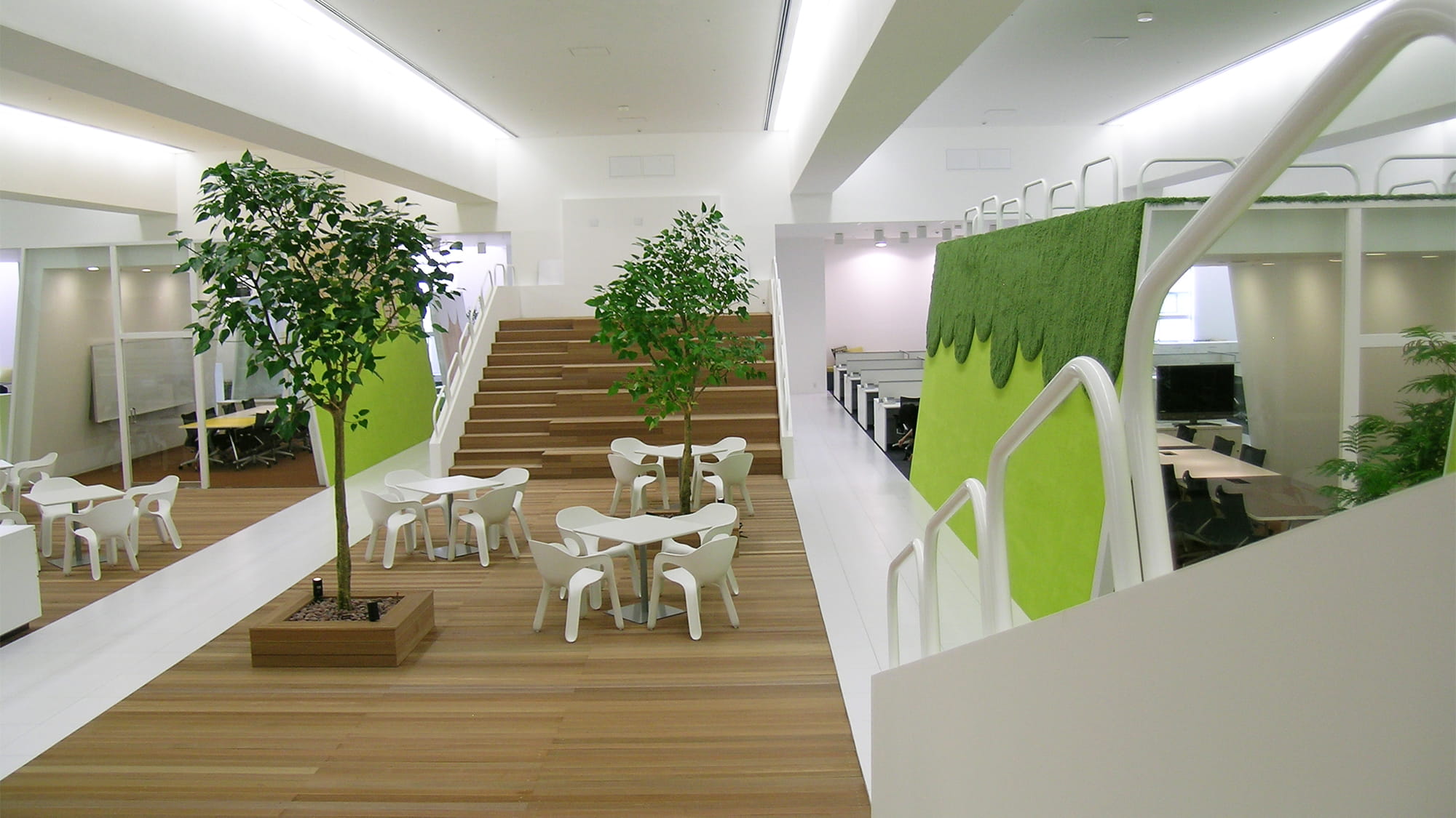 It was important to the architect Helmut Jahn that a roof should cover the plaza like an umbrella. The forum was not meant to be sealed, nor should it disconnect users from an outdoor experience.