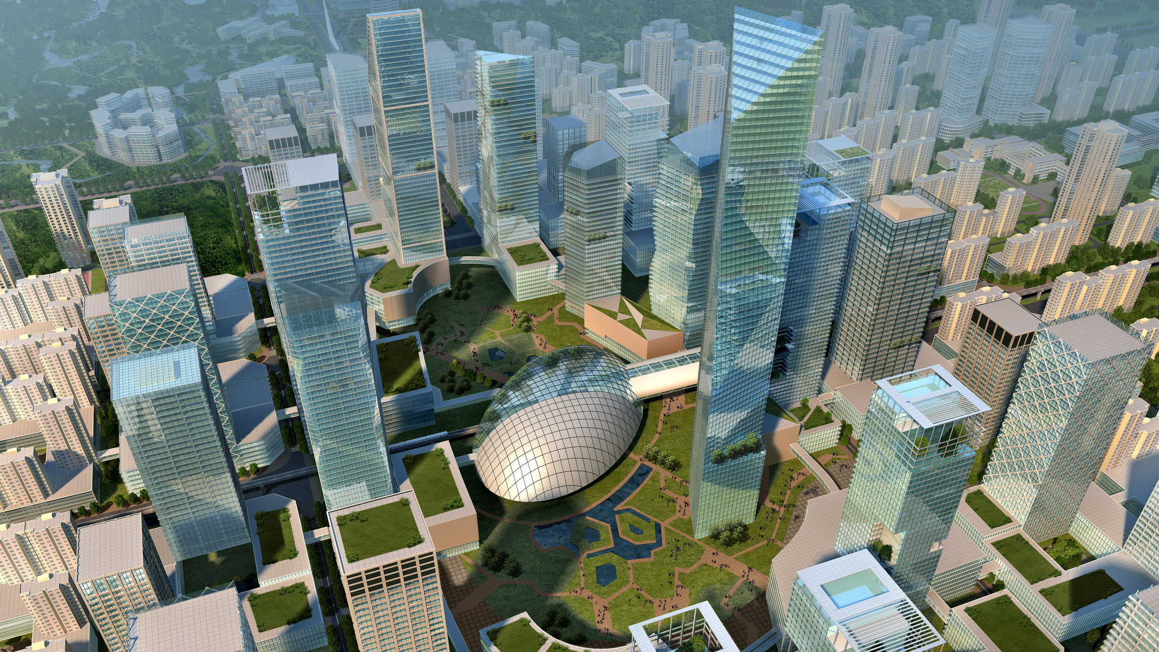 2座 傾斜的塔樓首尾兩端彎折 90 度后合攏,形成一段連通管